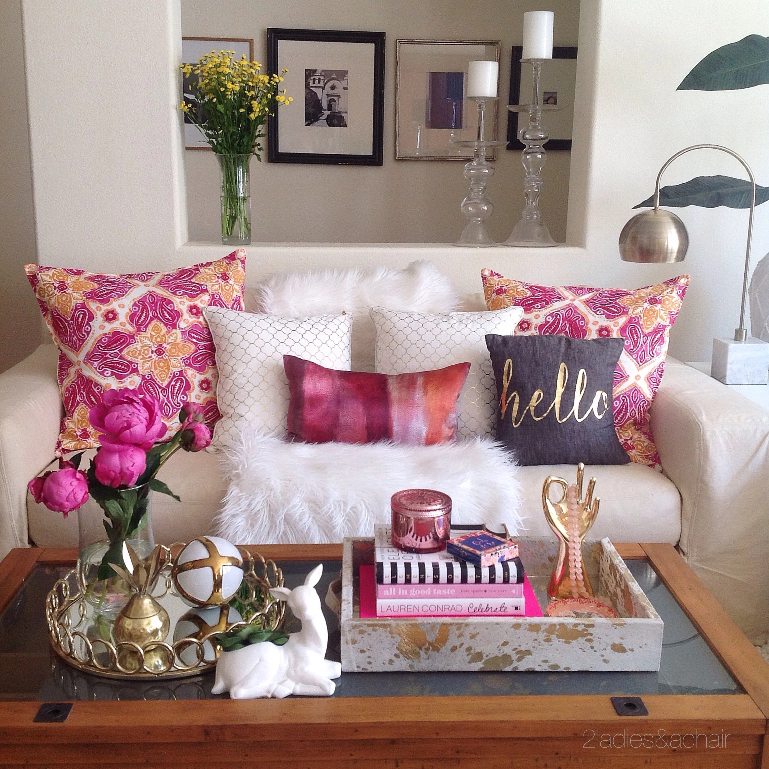 Fresh flowers are always a welcome sight on a coffee table! If you have a green thumb and terrific house plants go for it. I look for flowers that last a long time, or any element that brings the outdoors in. For value I shop at Trader Joe's and local Farmer's Markets. Flowers and plants add amazing color and depth.