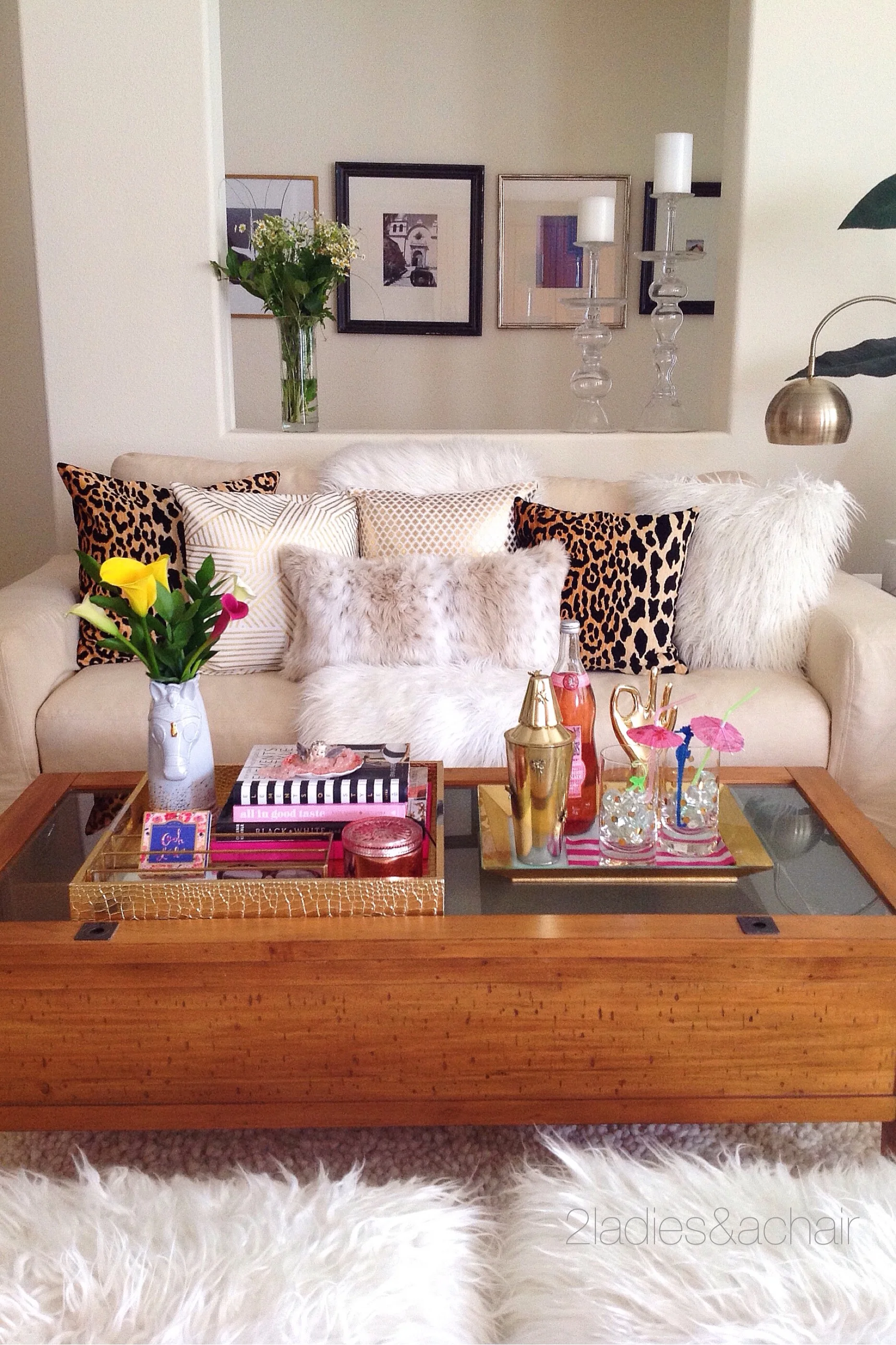 Use your coffee tables for entertaining! It's the most convenient place to serve cocktails and snacks... oh and coffee of course!