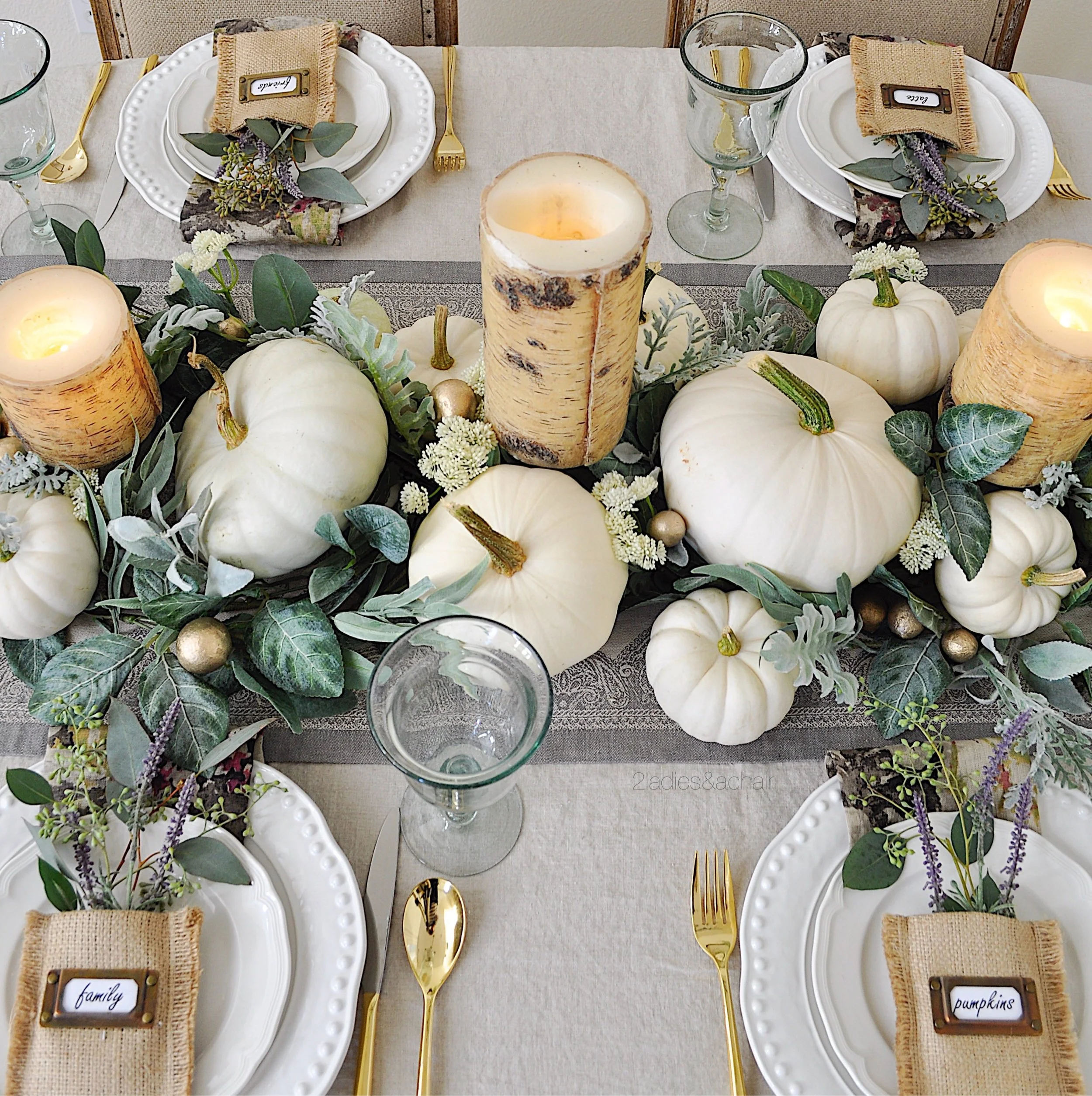 For your table, work in formal and casual elements together like I have here. The gold flatware is unexpectedly paired with the rustic burlap bags. This adds a lot of interest.
